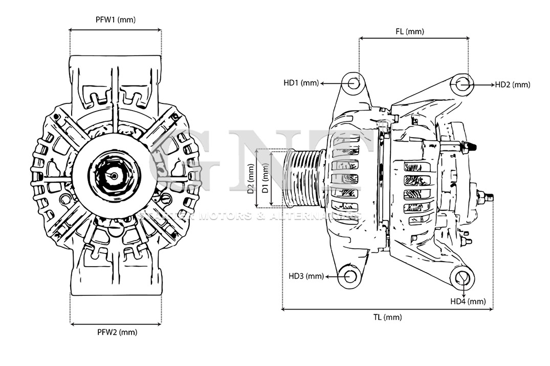 Q12: Notes on each parameter (Alternators with two mounting holes and two mounting feet)